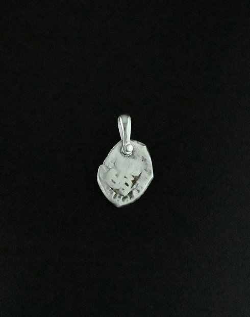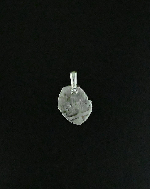 This silver half real cob was minted in Potosi, Bolivia. Dated in 1700 – 1746. The ruler being Philip V. This half real cob features a sterling silver bail attached. The view of this coin has the monogram of Philip V and the cross of Jerusalem.
